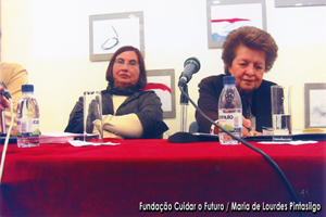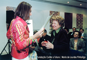 MLP com Ana Maria Caetano durante a sessão de lançamento do livro de Gilda Nunes Barata, «Onde é que você estava no 25 de Abril?», realizada na Fundação Cidade de Lisboa, a 23.Abr.2004.