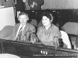 MLP, na qualidade de embaixadora delegada permanente de Portugal junto da UNESCO, ladeada pelo seu homólogo alemão Siegfried Kaempf, durante uma sessão de trabalho desta organização.
