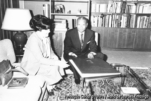 MLP, na qualidade de membro do Conselho Executivo da UNESCO, a entregar ao director-geral daquela organização, Amadou-Mahtar M´Bow, um livro em nome do general António Ramalho Eanes (presidente da República Portuguesa), Paris, 23.Fev.1979.