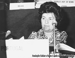 MLP, na qualidade de embaixadora delegada permanente de Portugal junto da UNESCO, durante uma sessão de trabalho desta organização.