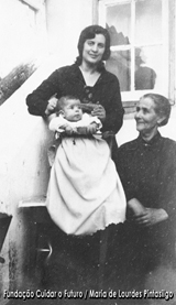 MLP ao colo da mãe, Amélia do Carmo Ruivo da Silva Matos Pintasilgo, na presença da avó, Raquel do Carmo Ruivo da Silva.