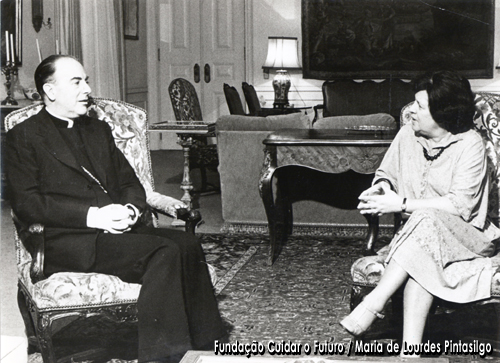 Fotografia da audiência em que Maria de Lourdes Pintasilgo, na qualidade de primeira-ministra do V Governo Constitucional, recebeu o núncio apostólico, Monsenhor Angelo Felici.